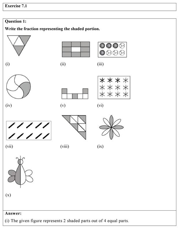 NCERT Solutions for Class 6 Maths Chapter 7 – Fractions Exercise 7.1