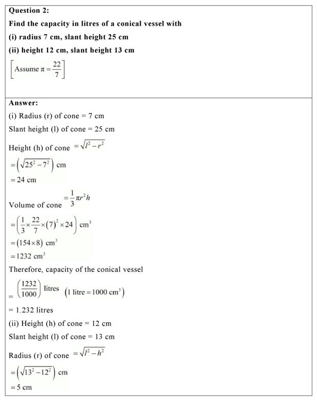 NCERT Solutions for Class 9 Maths Chapter 13 – Surface Areas and Volumes Ex 13.7