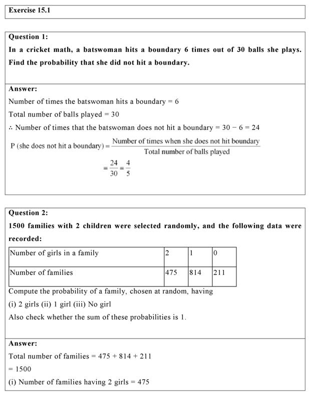 NCERT Solutions for Class 9 Maths Chapter 15 – Probability Ex 15.1